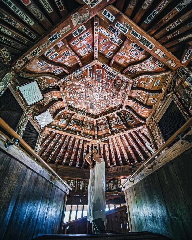 会津さざえ堂(也称为円通三匝堂)是位于日本福岛县会津地区的一座独特的佛教寺庙。这座寺庙以其独特的结构而闻名,因为它是按照螺旋形(或者说是”蜗牛形”)构建的,让人们可以通过顺时针方向的楼梯进入,然后逆时针方向的楼梯退出。这个独特的设计是基于佛教思想的象征,旨在代表人们在生死轮回(或者说是“轮回”的概念)中的旅程。其目的是帮助参观者在穿越这个结构时,进行深思熟虑并提高自我认知。
