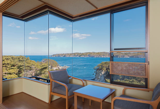 是一家位于日本岩手县宮古市的酒店,坐落在美丽的三陸海岸线附近,尤其靠近著名的浄土ヶ浜海滩。